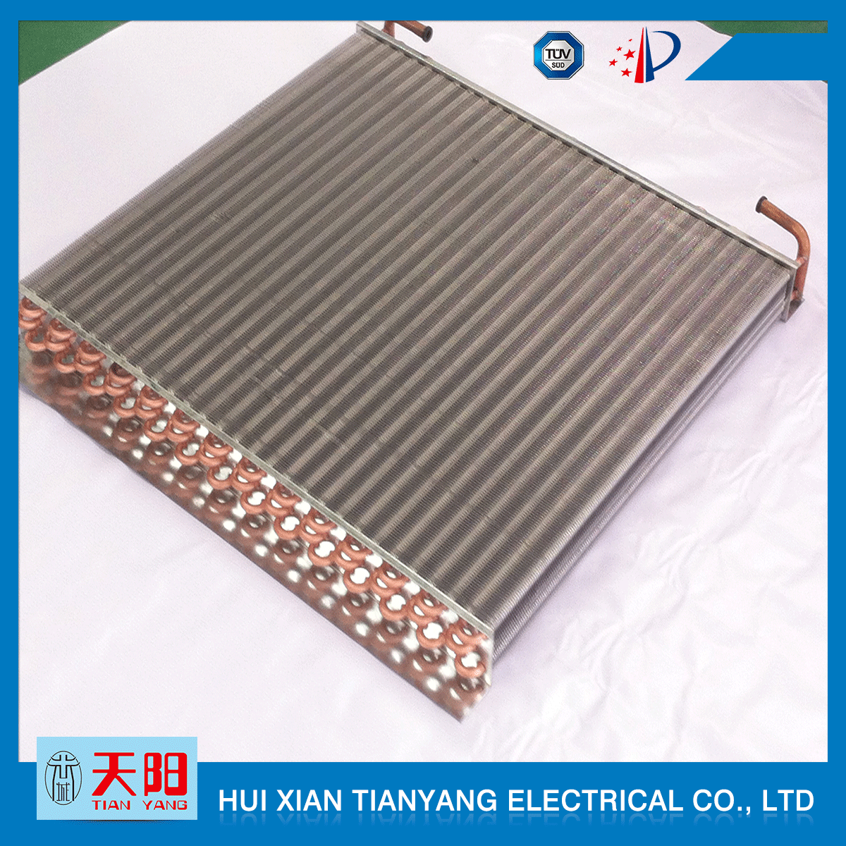 輝縣天陽電器有限責任公司位于肥沃的中原河南省輝縣市學院路中段工業集聚區興業園3號廠房,以制冷設備用冷凝器,蒸發器,熱交換器為主。主要材料為銅管鋁翅片,銅管銅翅片,鋁管鋁翅片。廣泛應用于冰箱冰柜,制冷設備,暖通設備,空調,自動售貨機,冷干機,超市立風柜,冷藏車,烘干機等產品領域?! 」咀?998年成立以來,始終堅持:“科技造就產業、質量成就信譽、誠信鑄就輝煌”的質量方針,從產品拓展上堅持“人無我有,人有我優,人優我特的”經營理念,25年來,從1998年開始供應河南冰熊集團下屬的冷柜廠,制冰機廠各種冷凝器;2003年之后,原冰熊集團的精英志士開始在全國各地發展,所到之處依托我公司供貨,以致于多家目前已具行業中佼佼者的公司,從而建立了如凱雪公司,兆邦公司、凌云公司、海寶公司、正雪公司、上海忠云、山東德萊維等幾十余家公司在草創時期的啟蒙供貨商,友好共贏長達十余年,成為我國制冷行業的供應商。以致在2015年初雙匯集團面向社會的招標書中指名要我公司冷凝器、蒸發器指定產品供應商